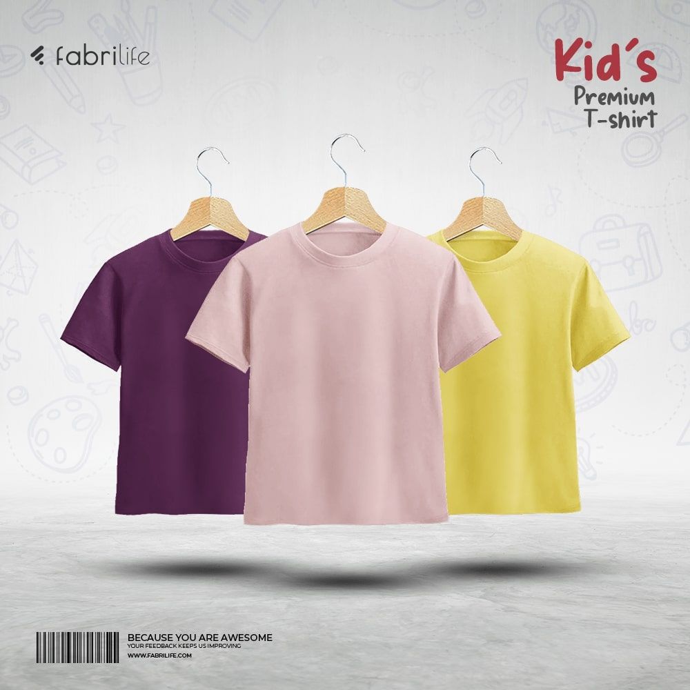 Kids Premium Blank T-Shirt Combo - Purple, Light Pink, Yellow