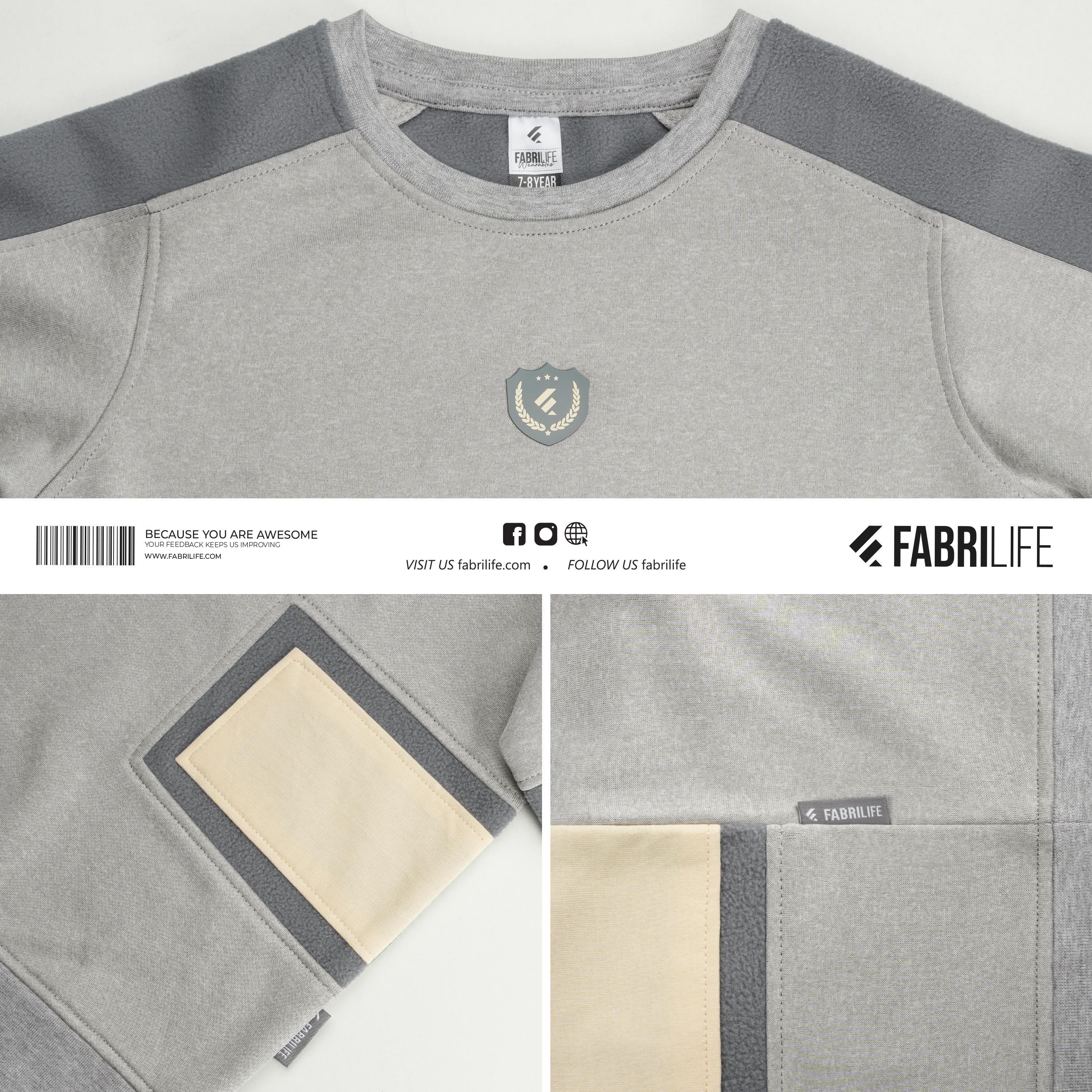 Features a cozy Grey Melange color scheme with a color-block style contrast.