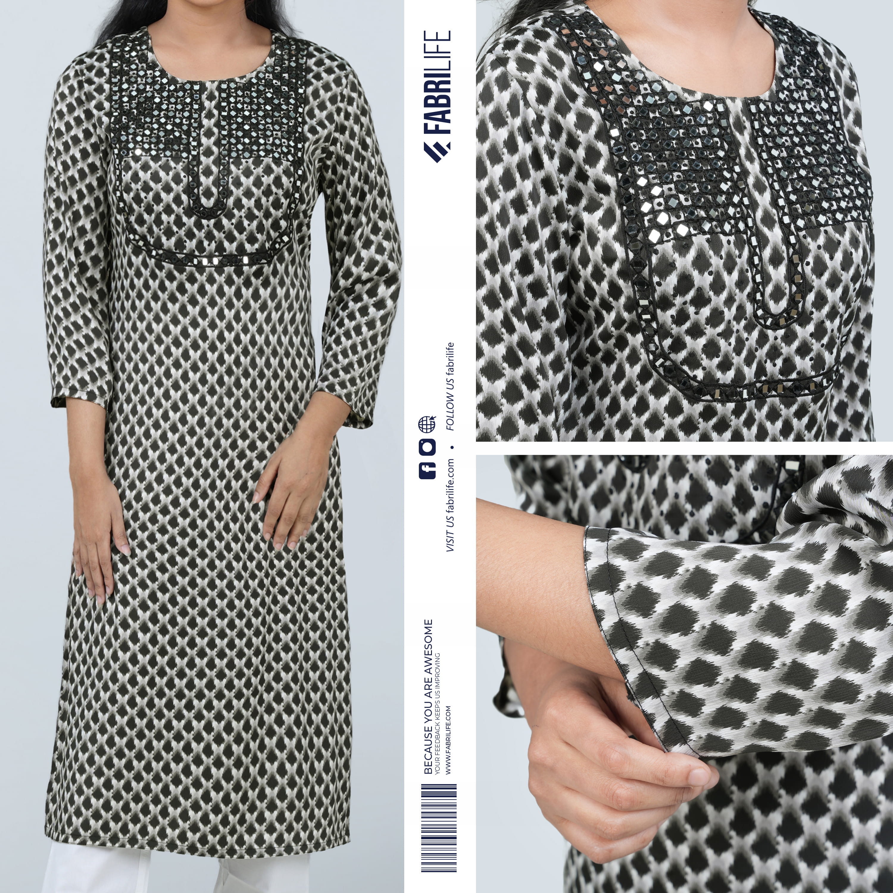 • Manual embroidery detailing for artisanal finish