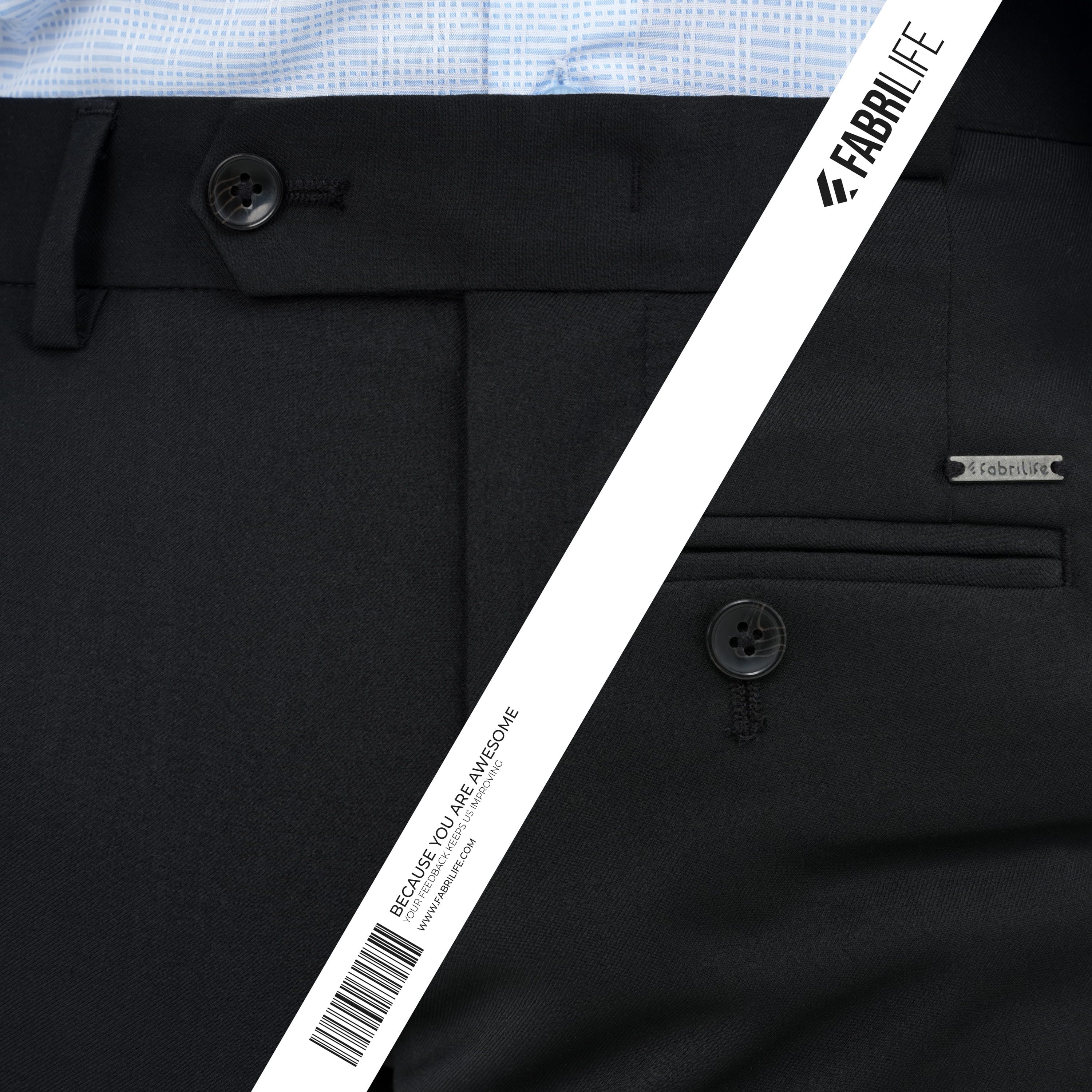 • Metal zipper fly: for a sleek, durable, and refined front closure
